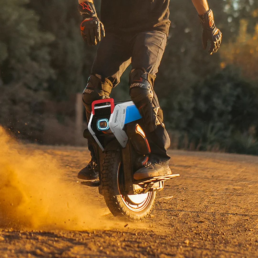 La Adventure adopta resortes de aleación de alta gama, utilizados en motos y autos todoterreno de primera calidad. Su sección delantera tiene una rigidez de 600 lbs/in, lo que garantiza una suspensión más suave y uniforme para caminos levemente irregulares. Mientras que la trasera de 970 lbs/in, garantiza un rendimiento de rebote en segmentos todoterreno exigentes y al mismo tiempo protege las rodillas de quien se atreva a subirse a esta monorueda.